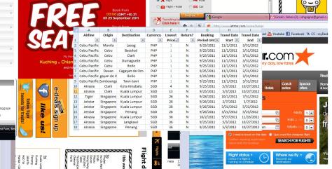 So I did what any (in)sane budget traveler would do: pretend that I have a lot of time to burn and plot all the promo fares in a spreadsheet for comparison. After pointlessly drooling over the discounted fares (Milan! Athens! Barcelona!), I came up with this obra. I entertained myself for a while, finding out which airline actually offers to lowest fares for a certain destination, and window-shopping for the next hotspots for the 2012 long weekends (hanggang window lang…). Hopefully, someone can actually make good use of this and book their next getaway — whether it’s just a weekend breather in Bali, or an extended retreat in Europe.