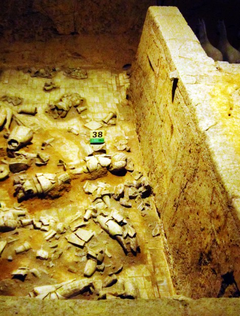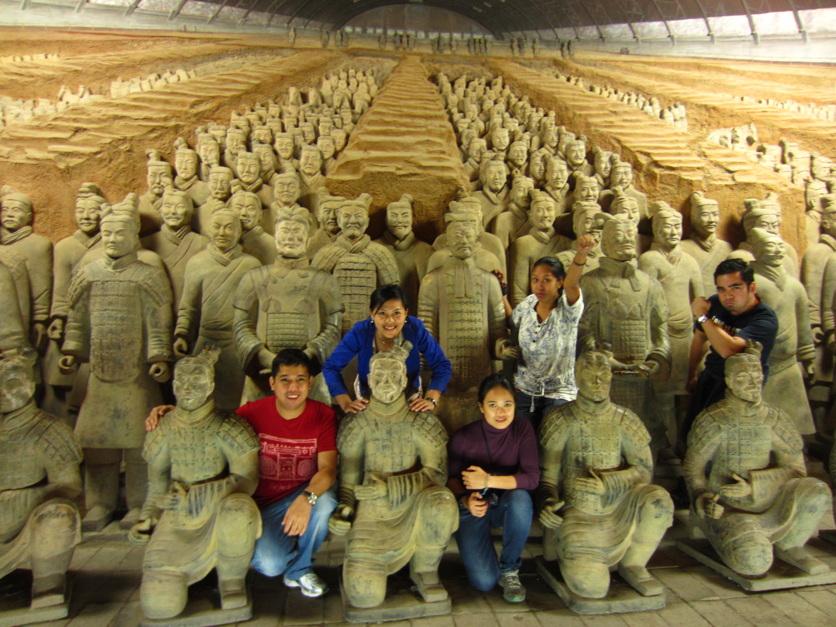 Morning came, and we alighted at Xian. After pouncing on a quick breakfast, we were off again on Bus 306 (only RMB 7!) to the Terracotta Army site. The exhibition grounds were VAST — three indoor excavated pits plus a museum — all in all, a smorgasbord of archaeological candy. Pit 1 has the biggest collection of unearthed warriors, ready to decimate intruders. Pit 2 is just about the same size, only that most of the statues are still waiting to be dug out underneath the dirt (the hall has a showcase of the different ranks of warriors you’ll find in the formations, though). I’m not sure if it’s just the lighting, but Pit 3 exuded a sort of a ‘tomb’ feel for me, where it hits you that all this exorbitance was really about the grandest Battle Royale in the afterlife.