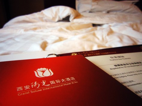 And the best way to cap off our day? After hours of lugging around our packs, we almost cartwheeled for joy when we chanced upon a half-day rate deal at a fancy hotel in Central Xian, just two blocks away from the train station. At only RMB 380 for all of us, it was definitely a steal. That first burst of hot shower was nothing short of heavenly.