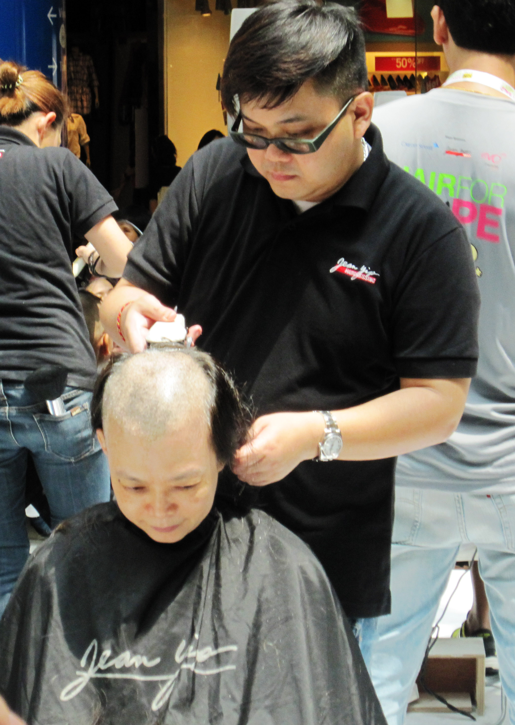 Men, women, young, old, curly, straight, afro-ed — all of them willingly came for the mass makeover. Some were first-timers, but a few were also veteran shavees. I couldn’t help but gawk at and admire all these gutsy souls who made the bold gesture for all the young ones who are struggling with the challenges of cancer.