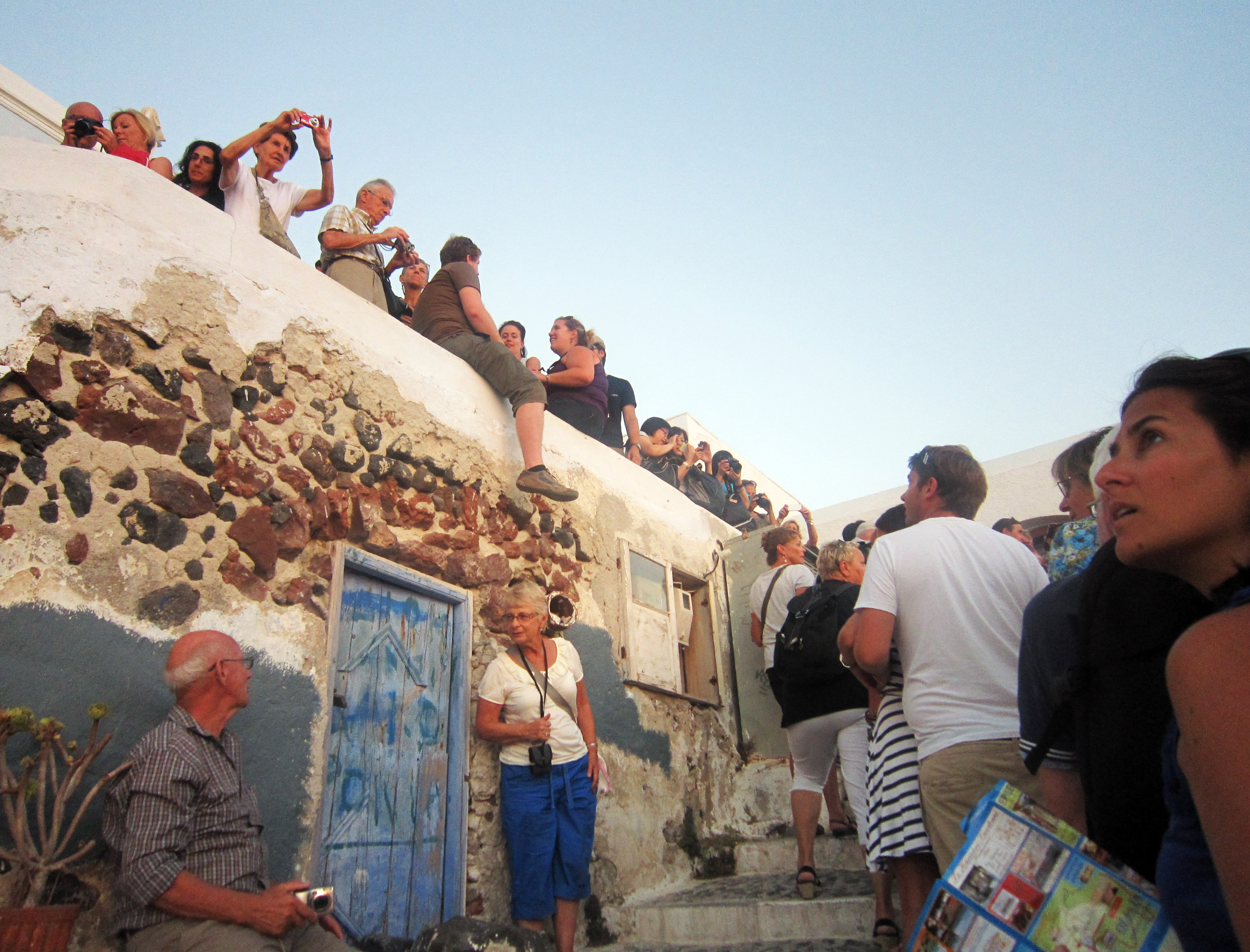 Spectator crowd for Oia’s sunset December 9, 2012 3144 × 2394 I Dream of Santorini Yup, the sunset is definitely a blockbuster in these parts.