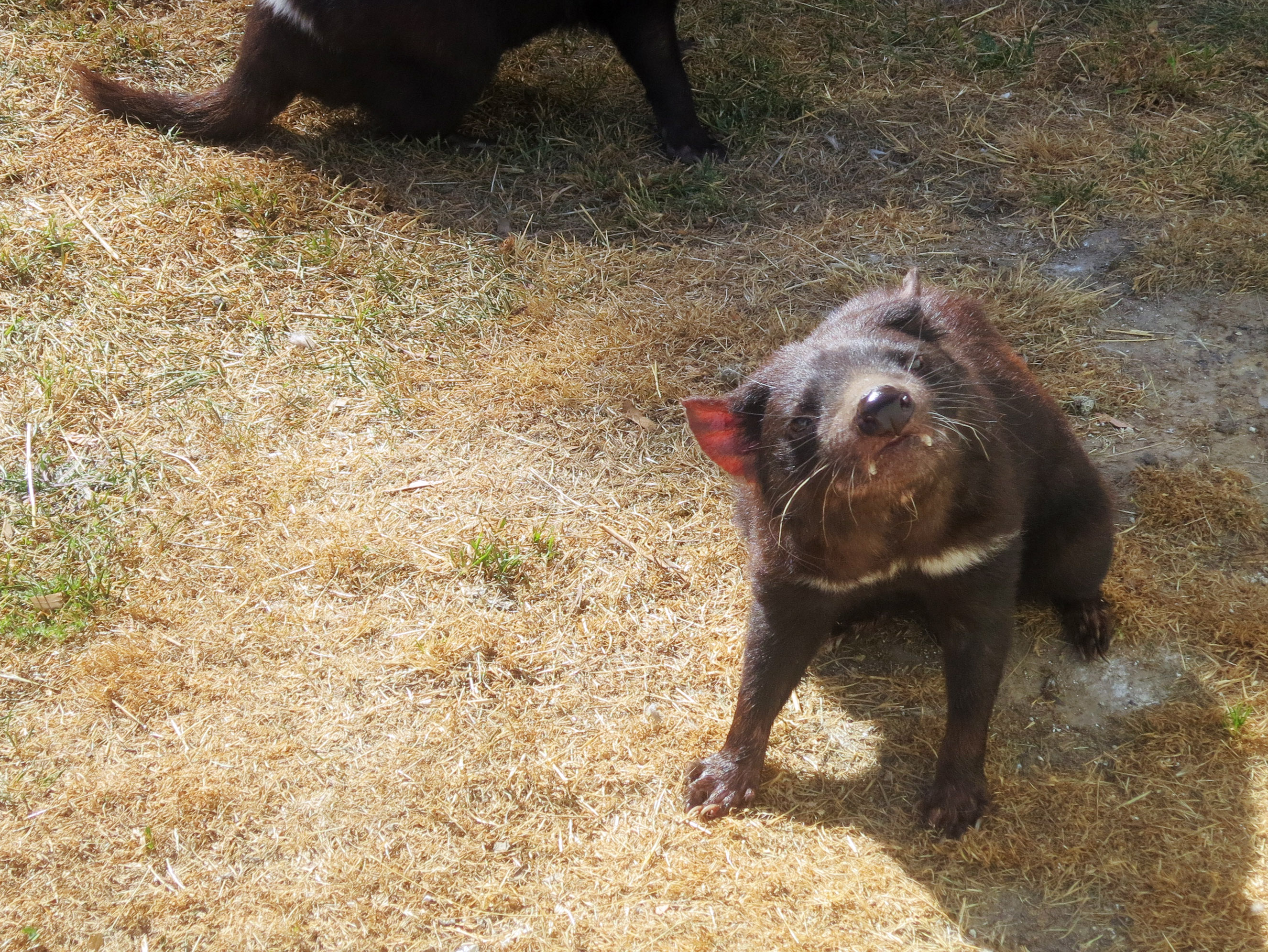 It was great to walk around and pet the free-roaming animals in the park (don’t worry, you can safely view the carnivorous Tasmanian Devils whilst they’re in a pen. 🙂 ) The resident wombats were my favorites though; how could I have not seen these creatures before? They’re like cute hamsters — only bigger and way more cuddlier. This one’s just begging to be hugged.