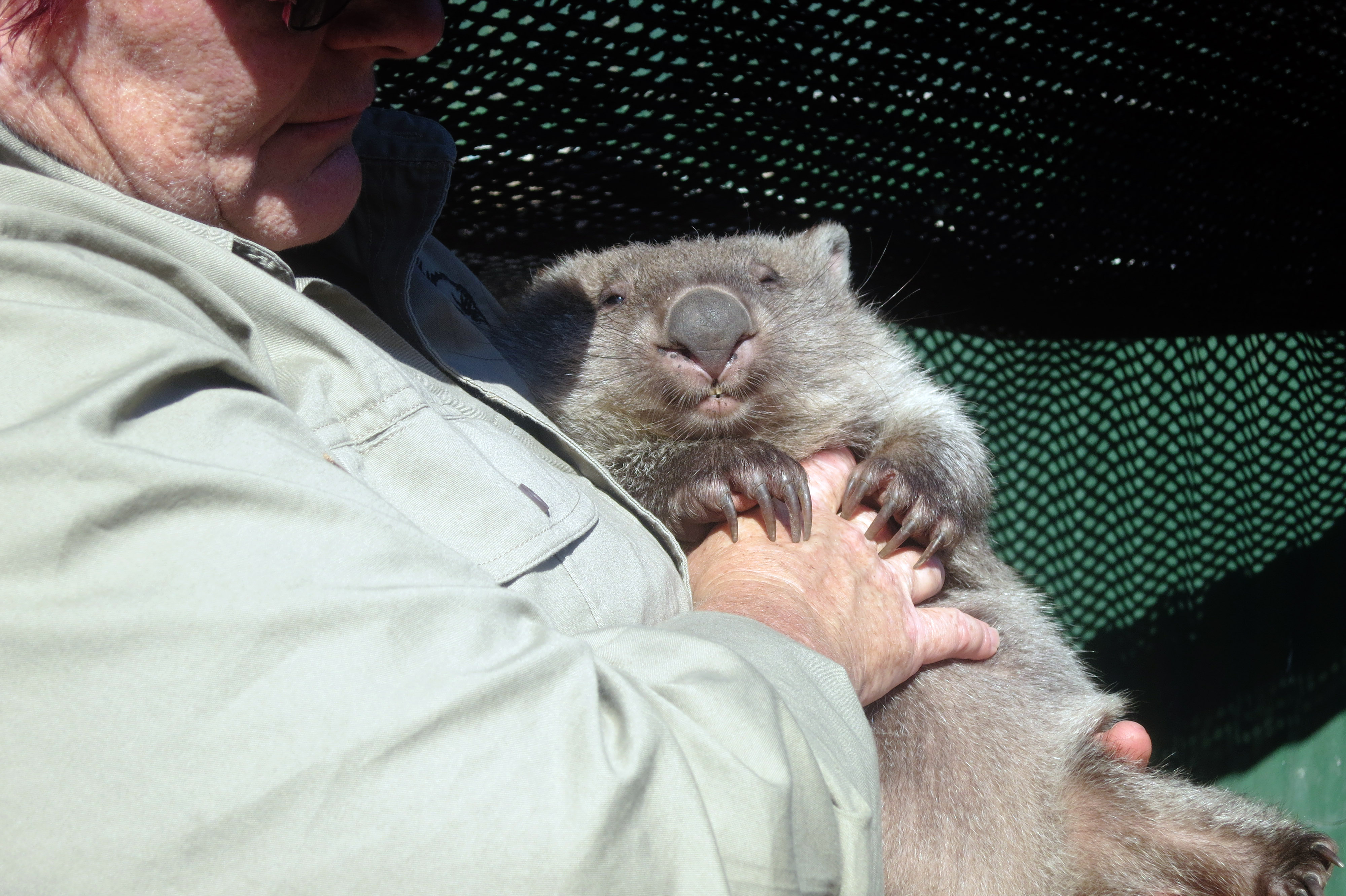 It was great to walk around and pet the free-roaming animals in the park (don't worry, you can safely view the carnivorous Tasmanian Devils whilst they're in a pen. :) ) The resident wombats were my favorites though; how could I have not seen these creatures before. It's like a cute hamster --- only bigger and way more cuddlier. This one's just begging to be hugged.