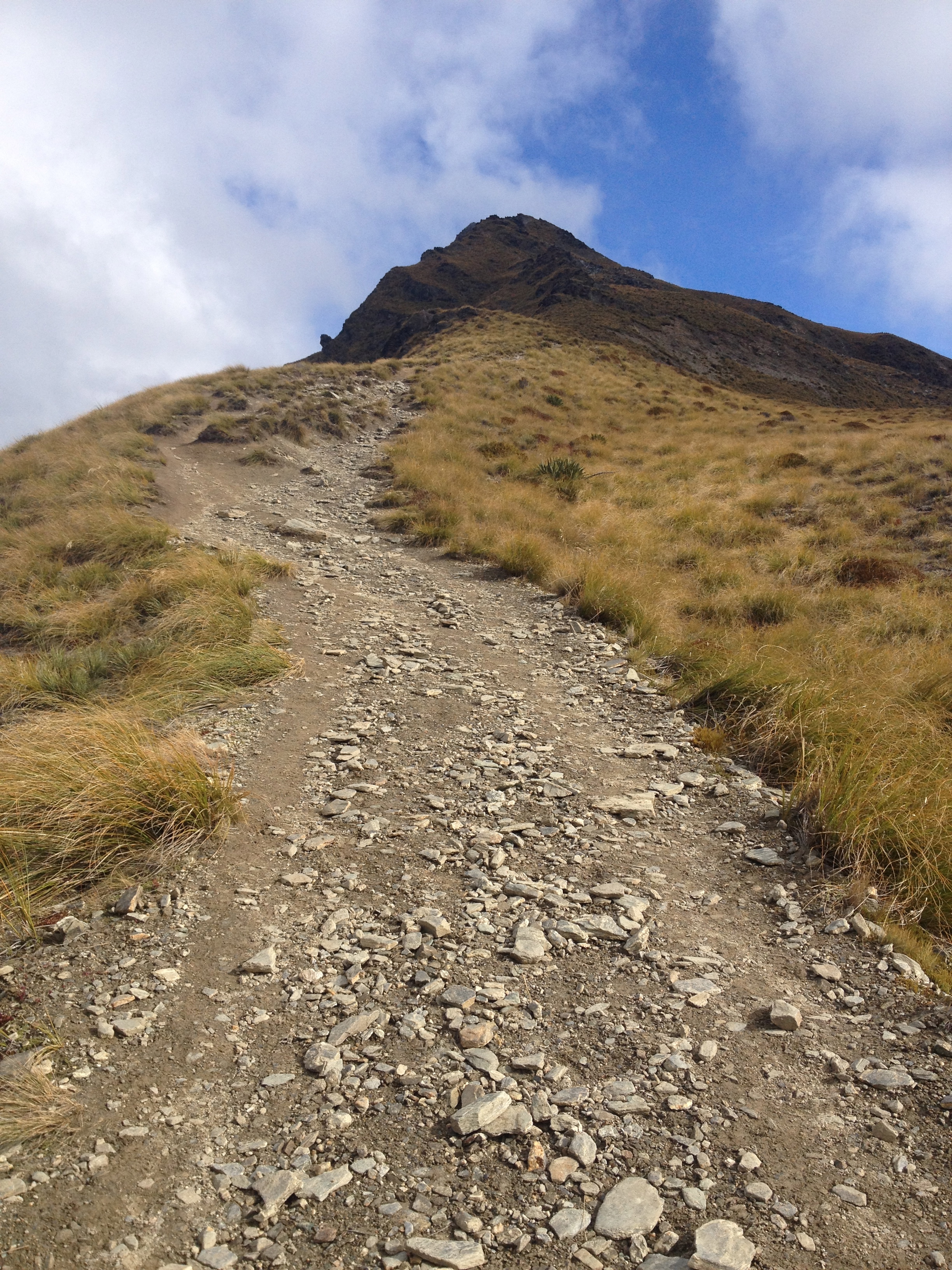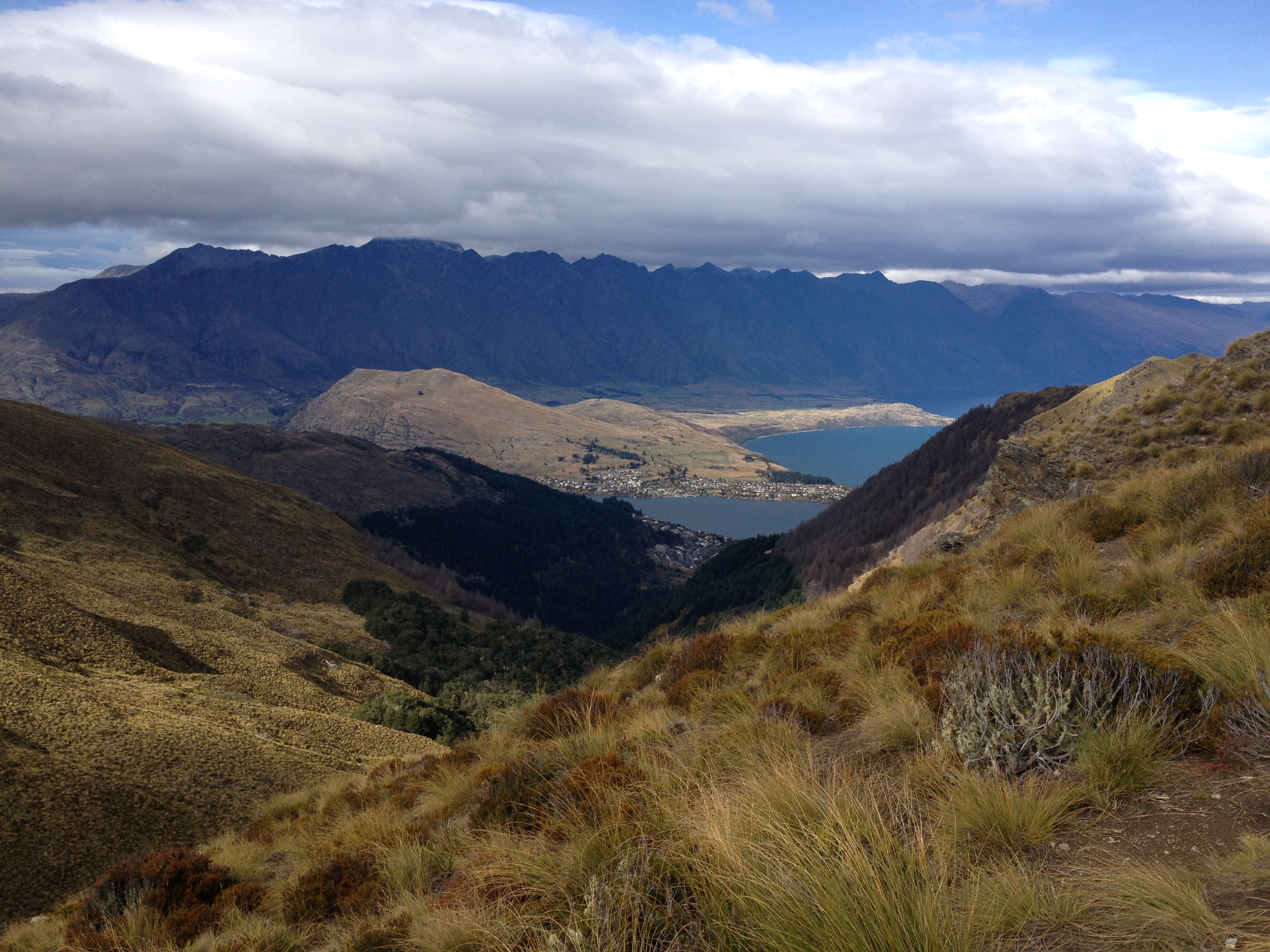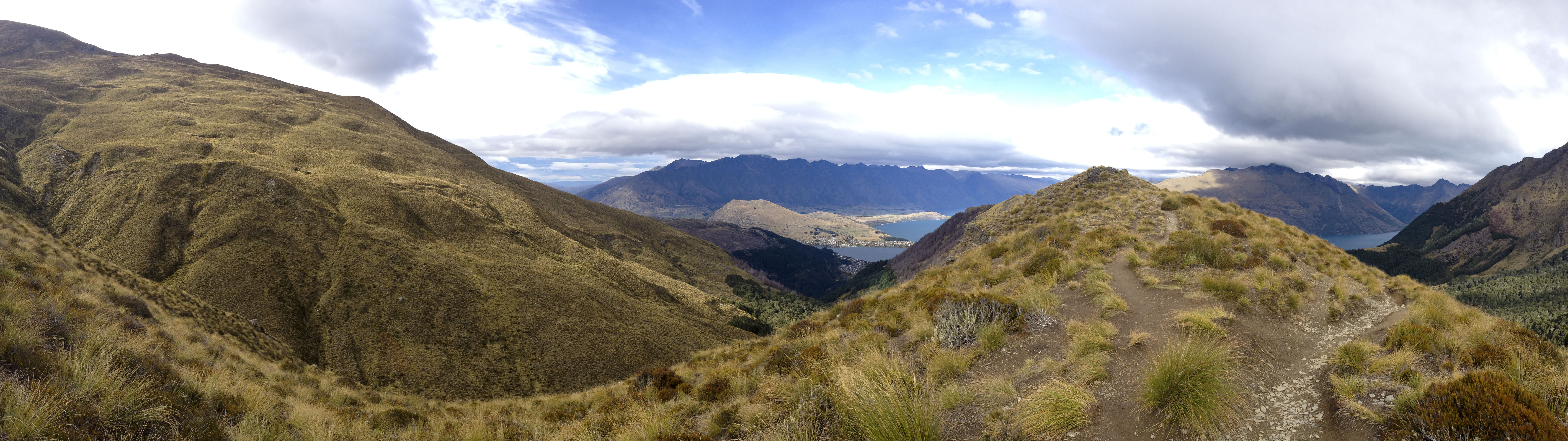 Out of the blue, the trail suddenly opened up to a great vastness of sky, sunshine and meadows. The green horizon met the wild blue yonder of the heavens for almost the whole trail. On every spot you stood upon, you can freely admire the range of the Remarkables, glimpse upon the near green and yellow rows of trees, smile at the intense blue-green of Lake Wakatipu.