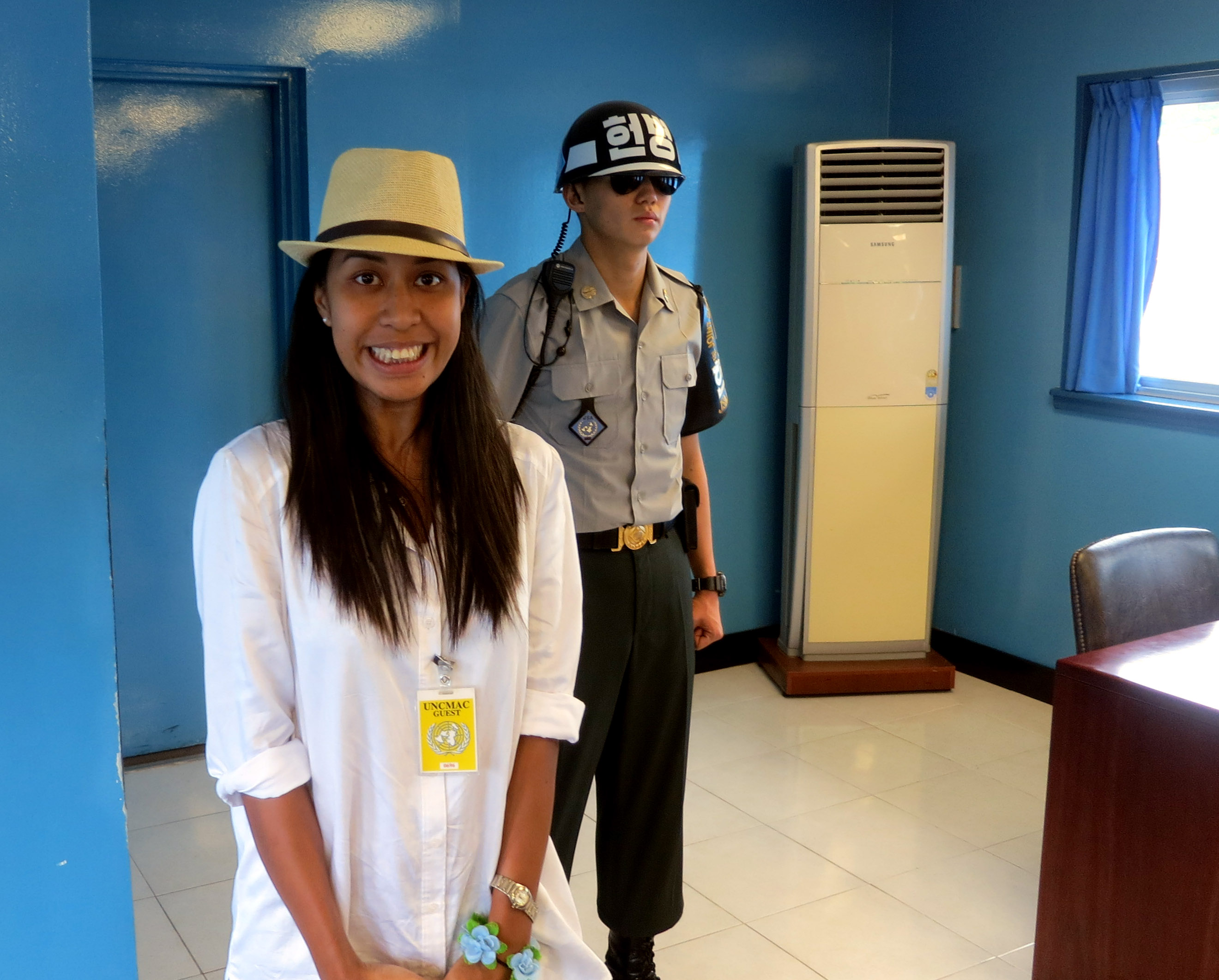 In this instant, we are given the freedom to walk past the border, as well as ten minutes to loiter as much as we can in North Korea — but only within the limits of this conference room. The guide warns that if we decide to make a run for the door at the North Korean side, she could not guarantee our return.