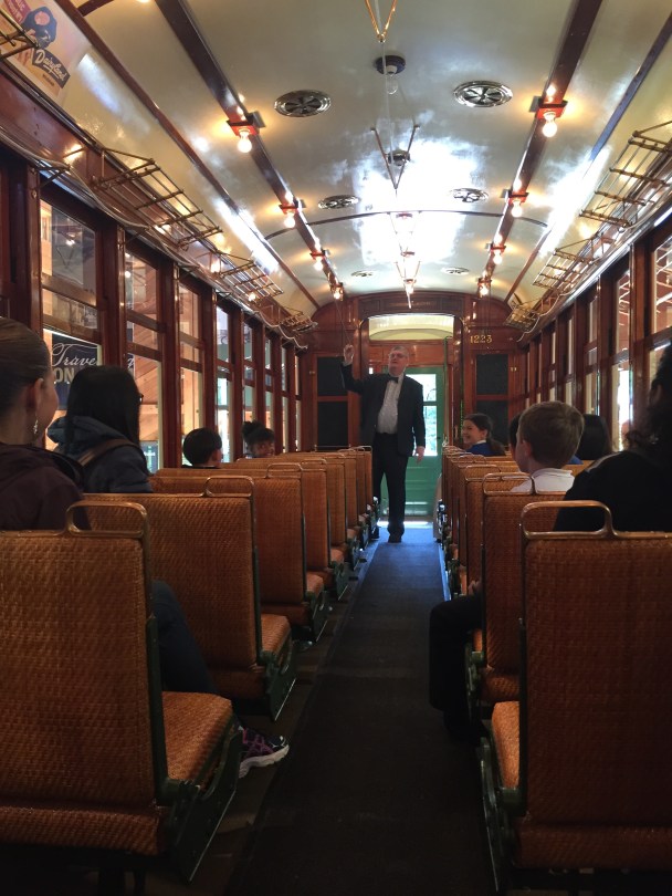 IMG_8256 June 9, 2019 2448 × 3264 Lessons Learned From Our Baby’s First Long-Haul Flight Our museum guide explaining how the 1920’s street cars worked.