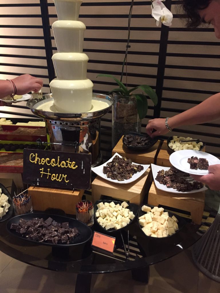 What about the food? Surely, the prices must be outrageous in this resort, right?! I actually found that the fare was not especially pricier than what was offered by the restaurants in Station 2. We surprisingly ate well using the restaurant vouchers that came with the day pass, even with drinks! Our collective 3.2k peso vouchers got us through lunch (pizza, coffee and calamansi juice), merienda (coffee and cookies), and a very filling dinner (sinigang and kare-kare, with beer). In the afternoons, the resort cafe offers a Chocolate Hour with a free buffet of chocolate treats, which was a good way to satisfy the munchies.