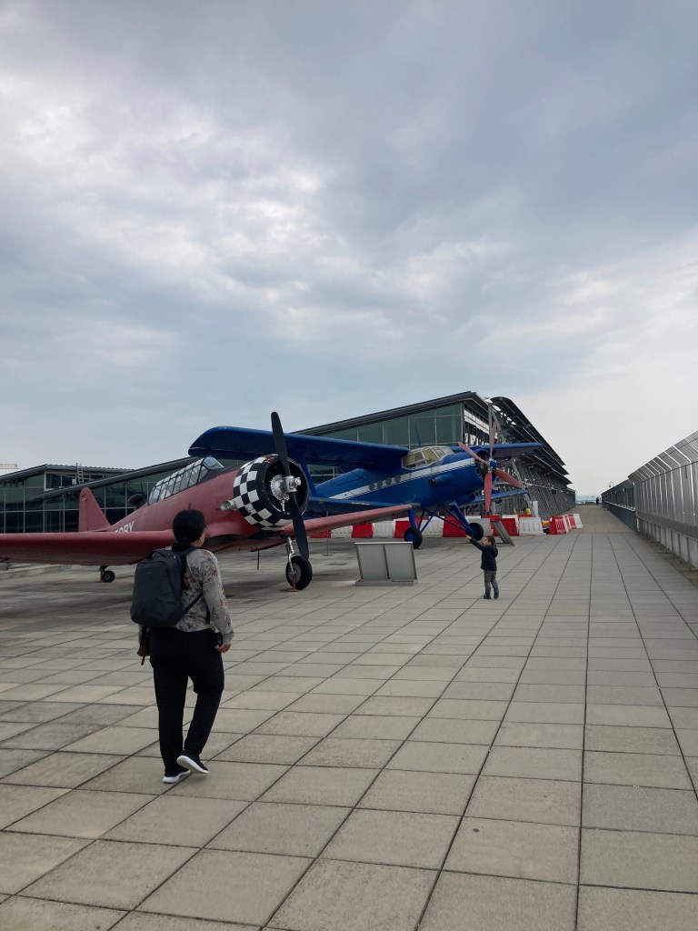 Aside from the obvious viewing platform of the airplanes ramping up and down on the Stuttgart Airport tarmac, there were several vintage airplanes on display. The real hit, however, were the small Mini-Pilot go-karts in a tiny demarcated tarmac, where kids could have the whole pilot experience as they pedal around. Our kiddo had such a blast! It looked so fun, I wished they had go-karts that big kids (ehem, ehem — I mean, me) could ride too.