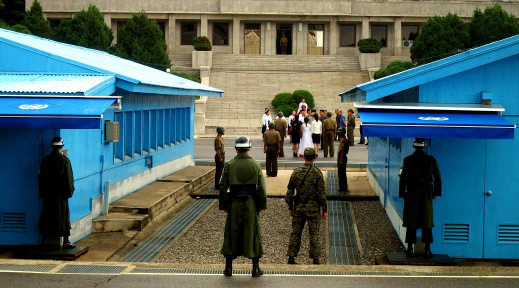As I look on to the thin stretch of elevated concrete, that crucial marker that keeps the peace for one of the most volatile feuds still existing in the world, flimsy is the word that comes to mind. It almost beckons you to at least try to violate it. Well, I say almost, if not for the stern-faced soldiers gravely guarding the demarcation line. They are staggered all over the Joint Security Area (JSA), one of the few things which North Korea and South Korea both agreed to share. Tension hangs thick in the air; the soldiers breathe this in all-day.